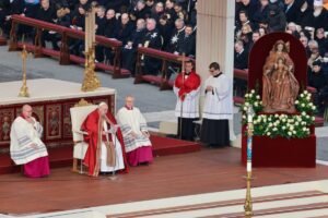 Vatican News (05.01.2023) – Trong bài giảng Thánh Lễ an táng Đức cố Giáo hoàng Bênêđictô XVI, Đức Thánh Cha Phanxicô bắt đầu bằng những lời cuối cùng của Chúa Giêsu trên thập giá: “Lạy Cha, con xin phó thác linh hồn con trong tay Cha”. Và suy tư của ngài tập trung vào hình ảnh Chúa Kitô, cũng như toàn bộ cuộc đời của Ratzinger đã tập trung vào Chúa Kitô, cho đến hơi thở cuối cùng.